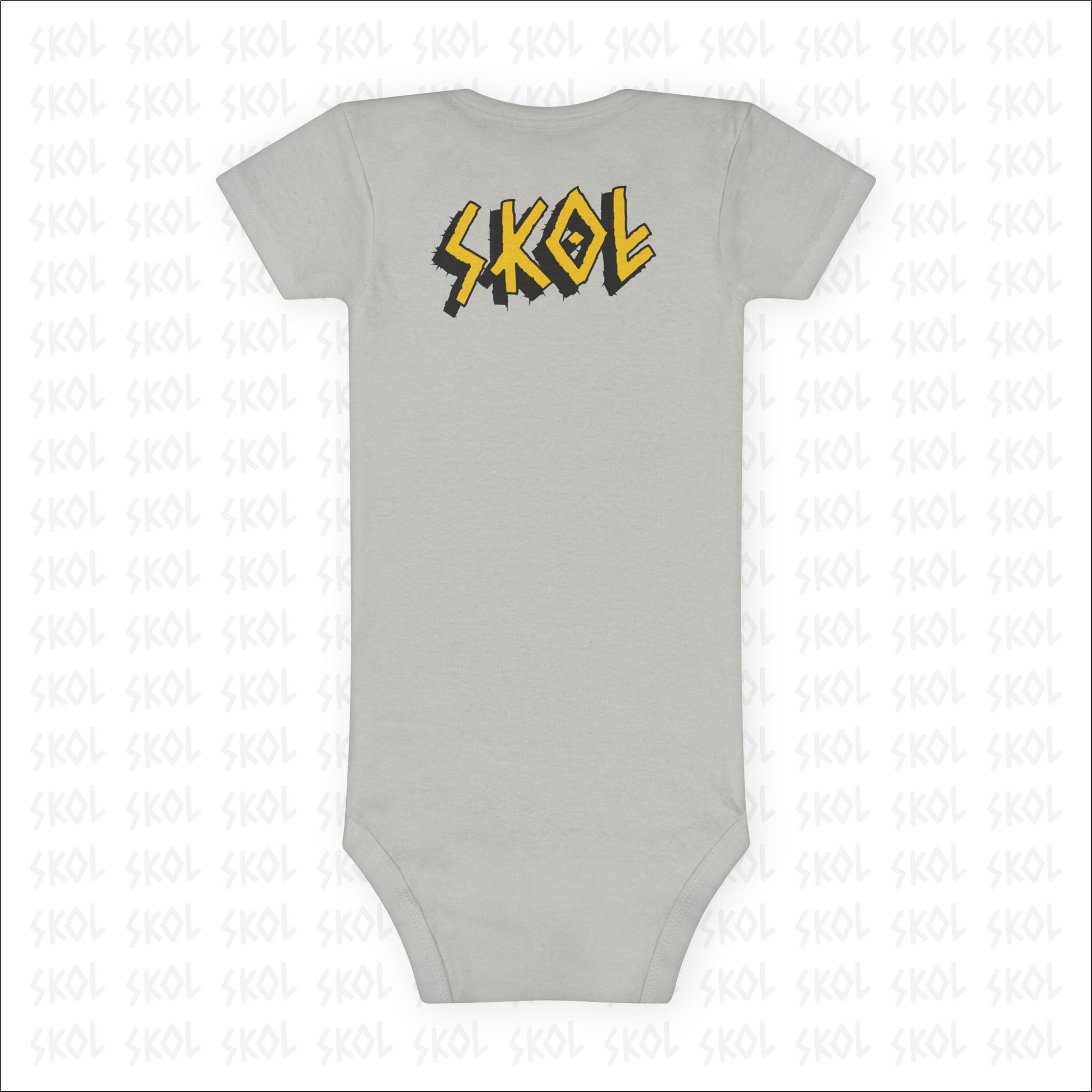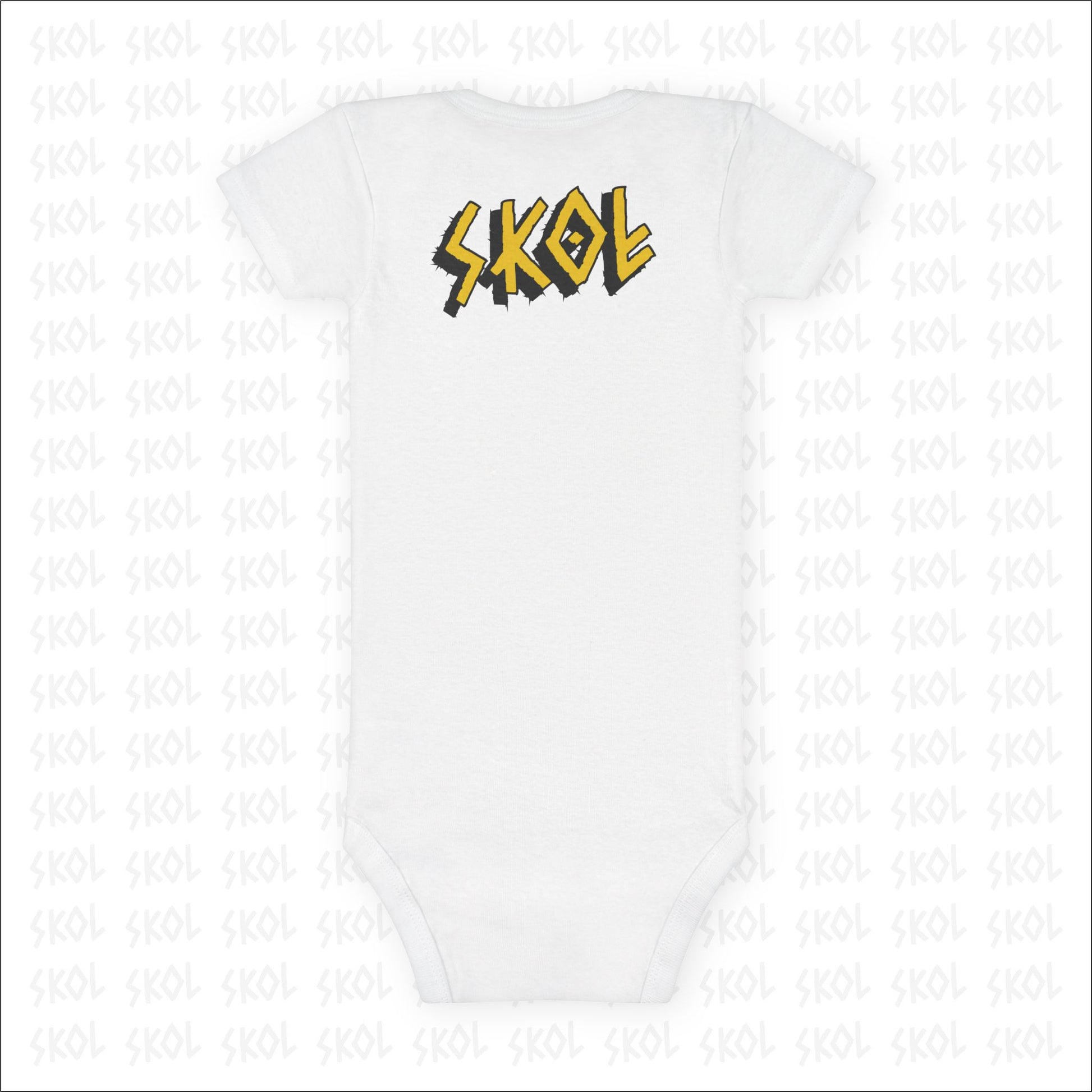 The custom short-sleeve baby Onesie® is built from 100% cotton rib. This makes for a comfortable, secure fitting for newborns and toddlers. The neckline is constructed with a lap shoulder. This inclusion assists with manipulating the fabric around the baby’s head. The bottom has a snap closure - designed with easy changing in mind. Both legs have ribbed openings for stability.